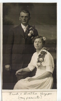 Spouse Bertha Sophia Volkert (m. 1915–1966) «Did not recognize date. Try slightly modifying the date in the first parameter.–Did not recognize date. Try slightly modifying the date in the first parameter.»"Marriage: Bertha Sophia Volkert to Fred Wilhelm Hoppe" Location: (linkback:http://jimlindstrom.com/mediawiki/index.php?title=Fred_Wilhelm_Hoppe) in Battle, Iowa[5]