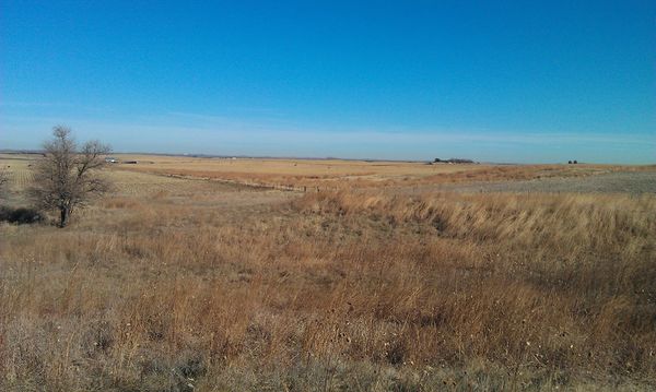 Standing on Charlie Lindstrom's place, near the circumference of the pivot, looking north-east across the unbroken center of the sections. |