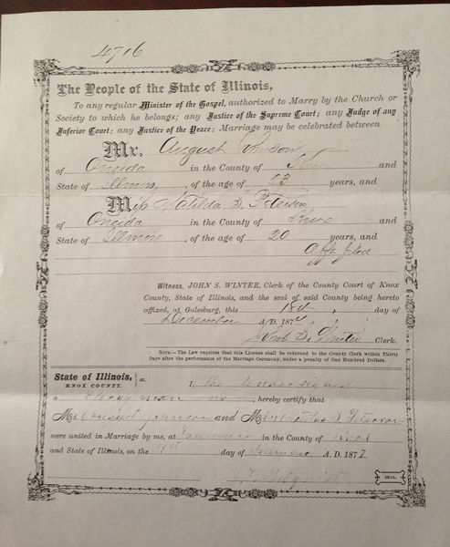 Photo, taken 2012-Nov-11, of a reprint ordered from Knox County Clerk, Illinois.