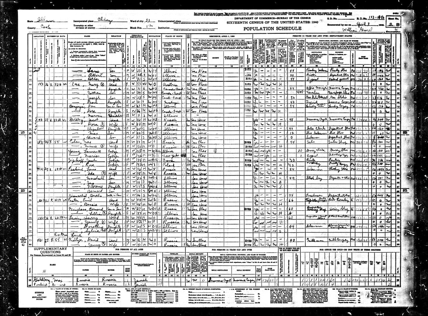 Reuben Rabinovich (Robbins) 1940 Federal Census (Part 2).