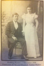 In 1881, Jacob Linn and several of his sons homesteaded land in Hand County, South Dakota. Much shuttling back and forth between Iowa and South Dakota took place during the 1880's and early 90's. Frank eventually became operator of the Shelby farm, while his brothers: Ambrose, Kenny, and Roy became permanent residents of South Dakota. Frank had also taken a homestead in South Dakota, which he held until April 1906, selling the quarter section for a profit of eleven hundred fifty dollars! Frank married Hannah Elizabeth (Libbie) Walker on 7 December 1898. Libbie Walker was born on 10 January 1875. She was the granddaughter of Samuel Walker and Elizabeth Stover Walker, early settlers of Johnson County, Iowa.