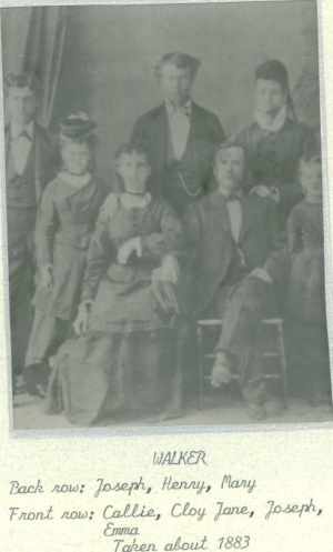 Mary Jane Walker (1849-1929) Frances A. E. Walker (1851-1858) Henry Allen Walker (1853-1914) Joseph Walker Jr. (1858-1934) Callie A. Walker (1862-1926) Emma Walker (1865-1940) Minnie Belle Walker (1867-1868) |