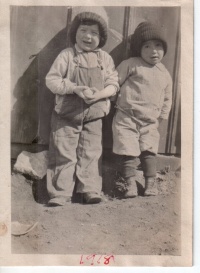 Les riding on his father's back Les as a toddler Les and brother Sam (1918)